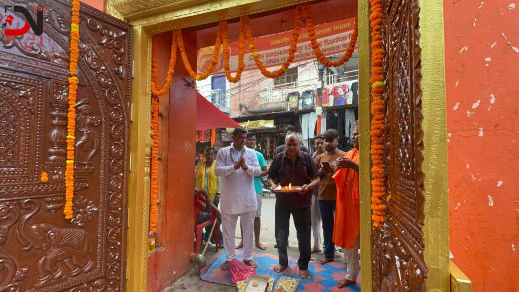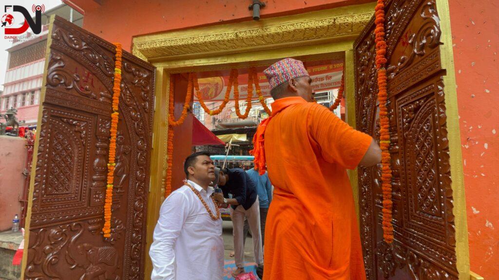 वडाध्यक्ष बर्माका बुबा राम बहुरी बर्मा लगायत परिवारका सदस्यहरुले पुजाआजा सहित मन्दिरमा ढोका जडान गरेका हुन् ।