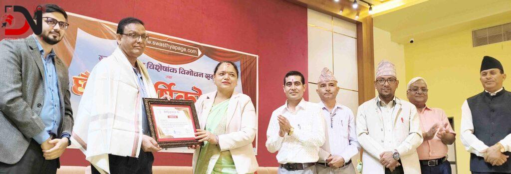 दिर्घायु हाउस प्रालिद्वारा सञ्चालित स्वास्थ्यपेज शनिबारदेखि आफ्नो छैठौँ वर्षमा प्रवेश गरेको छ । सो अवसरमा वार्षिकोत्सव, विशेषांक विमोचन तथा अग्रज चिकित्सक सम्मान कार्यक्रम आयोजना गरिएको हो । कार्यक्रमका प्रमुख अतिथि श्रेष्ठले अनलाइनको प्रिन्ट विशेषांकको विमोचन गरेकी थिइन् ।
