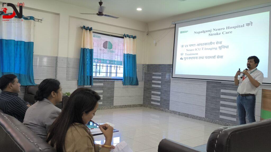 विश्व स्ट्रोक दिवसको अवसरमा बुधबार नेपालगन्जमा स्ट्रोक (मस्तिष्कघात) सम्बन्धी सचेतना कार्यशालाको आयोजना गरिएको छ । “स्ट्रोक रोक्न सक्छौं, समयमै चिन्न सिकौँ” भन्ने सन्देशका साथ नेपालगन्ज न्यूरो एण्ड जनरल हस्पिटलले कार्यक्रम आयोजना गरेको हो ।