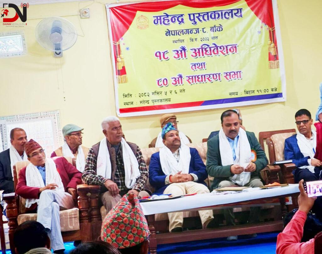 पश्चिम नेपाल क्षेत्रकै सबैभन्दा पुरानो ज्ञान–मठका रूपमा परिचित नेपालगन्जस्थित, महेन्द्र पुस्तकालयले आफ्नो ८०औँ वार्षिक साधारणसभा तथा १८औँ अधिवेशन शुक्रवार आयोजना गरिएको छ ।