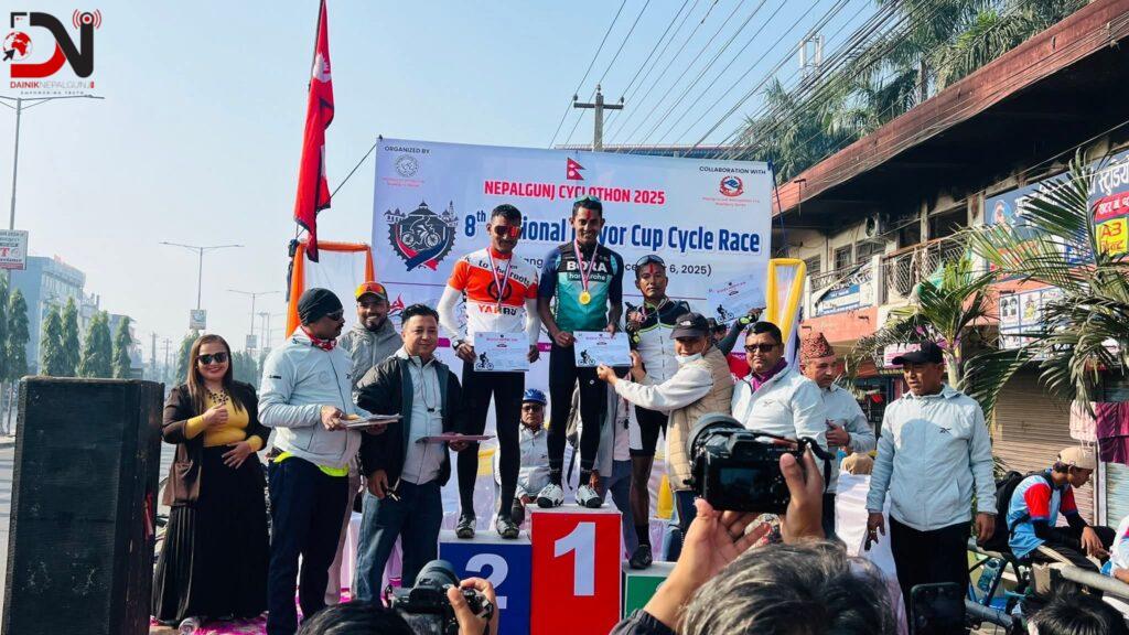 नेपालगन्ज उपमहानगरपालिकाको सहयोगमा नेपालगन्ज साइक्लिङ्ग क्लबले आयोजना गरेको प्रतियोगिताको उद्घाटन कार्यबहाक नगर प्रमुख कमरुद्दिन राईले गरेका थिए । उद्घाटनमा प्रमुख जिल्ला अधिकारी दिलकुमार तामाङ, वडा १२ का अध्यक्ष तरुण बज्राचार्य, पत्रकार महासंघ बाँकेका अध्यक्ष नवीन गिरीलगायतको उपस्थिति थियो ।