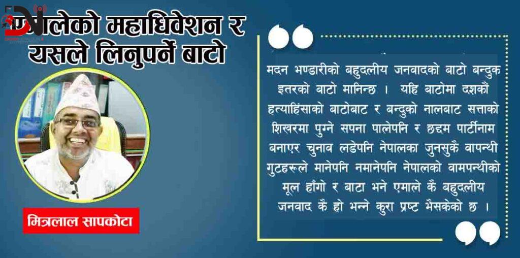 मदन भण्डारीको बहुदलीय जनवादको बाटो बन्दुक इतरको बाटो मानिन्छ । यहि बाटोमा दशकौं हत्याहिंसाको बाटोबाट र बन्दुको नालबाट सत्ताको शिखरमा पुग्ने सपना पालेपनि र छद्दम पार्टीनाम बनाएर चुनाव लडेपनि नेपालका जुनसुकै वापन्थी गुटहरुले मानेपनि नमानेपनि नेपालको वामपन्थीको मूल हाँगो र बाटा भने एमाले कै बहुदलीय जनवाद कै हो भन्ने कुरा प्रष्ट भैसकेको छ । किन कि नेपालमा सबैखाले वामपन्थी प्रयोग भैसकेपछि पनि अन्तिममा समाहित हुन आउने वामपन्थीको घर भनेको एमाले र बहुदलीय जनवादको घर नै रहेछ भन्ने कुरा विगत देखि हालसम्म भएका वामपन्थीहरुका टुटफुट मोर्चाबन्दी घेराबन्दी सबैखाले गुटउपगुटहरुको फुर्तिफार्ति पछि अन्तिममा लिने गरेको नीतिले प्रष्ट्याएको छ ।