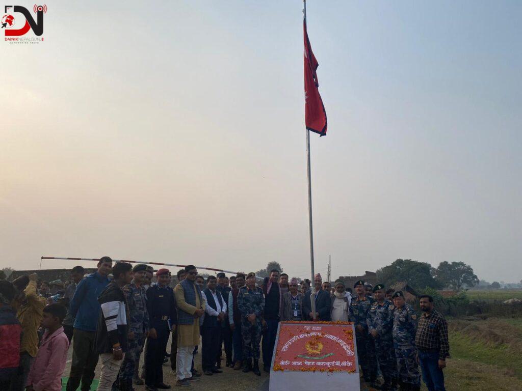 नेपाल र भारतको सीमा जोडिने बाँकेको दोस्रो मुख्य नाका नरैनापुर–१ मा आठ फिट उचाइमा राष्ट्रिय झण्डा फहराइएको छ । बुधबार एक समारोहबीच नरैनापुरको कटकुईया सीमा नाकामा नरैनापुर गाँउपालिकाका सशस्त्र प्रहरी बल नेपाल नं. ३० गण बोर्ड आउन पोष्ट कटकुईयाँमा बाँकेका प्रमुख जिल्ला अधिकारी श्रवण कुमार पोखरेलले राष्ट्रिय झण्डा फहराउनु भएको थियो ।