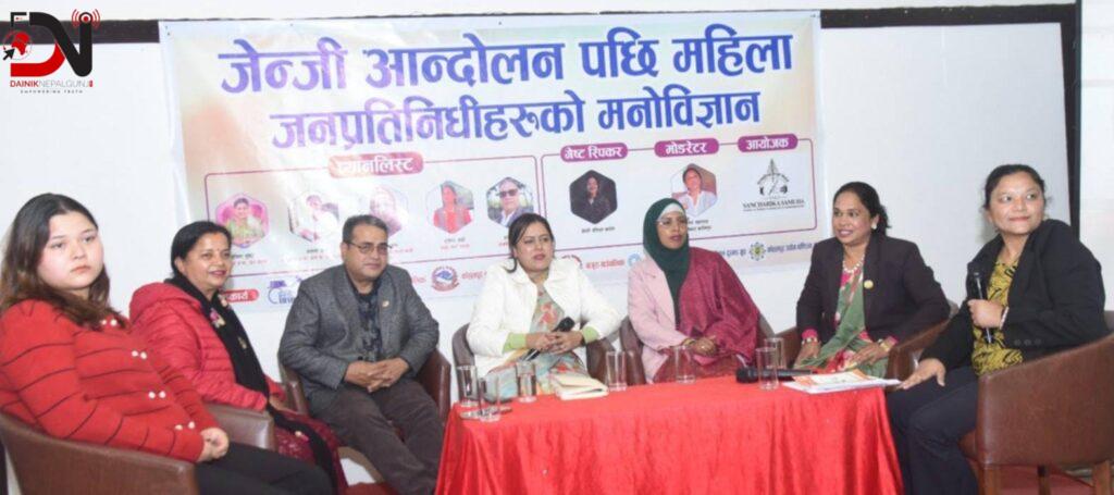 संञ्चारिका समूह बाँकेको आयोजनामा ‘जेन्जी आन्दोलनपछि महिला जनप्रतिनिधिहरूको मनोविज्ञान’ विषयक कार्यक्रम बुधवार नेपालगन्जमा आयोजना भएको छ ।