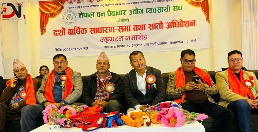 नेपाल वन पैदावार उद्योग व्यवसायी संघ बाँकेको बुधबार नेपालगन्जमा सम्पन्न दसौँ वार्षिक साधारणसभा तथा सातौँ अधिवेशनमा सहभागी व्यवसायीहरूले किसानले आफ्नै निजी आवादी जग्गामा उत्पादन गरेका काष्ठजन्य वन पैदावारलाई अन्य अन्नबाली सरह बिनारोकावट किनबेच तथा ओसारपसार गर्न पाउने व्यवस्था गर्न सरकारसँग माग गरेका हुन् ।