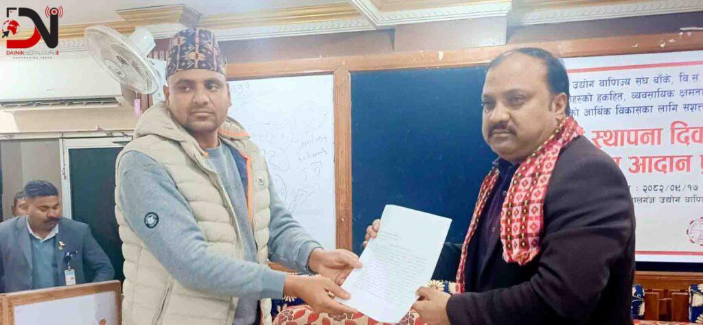 संघ स्थापनाको ५८ औं वार्षिकोत्सवको अवसरमा बिहीबार नेपालगन्जमा आयोजित कार्यक्रममा संस्थाका कार्यवाहक अध्यक्ष चिरञ्जीवी ओलीले ज्ञापन पत्र बुझाउँदै खुला सीमा कडाई नहुँदा भैरहेको तस्करीले व्यवसायमा असर बारे बताएका थिए ।