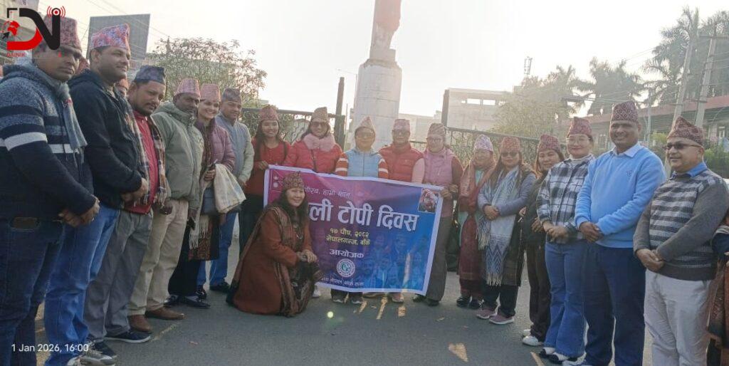 बास नेपाल बाँके शाखाको आयोजनामा आज नेपालगन्जको बिपी चौकमा आयोजित नेपाली टोपी दिवस कार्यक्रममा बोल्ने बक्ताहरुले नेपालको नेतृत्वतहमा रहेका ब्यक्तिले टोपी लगाउन लाज मानिरहेको अवस्थामा हरेक नागरिकले नेपाली टोपी र पोषाकको जगेर्ना गर्नुपर्नेमा जोड दिएका थिए ।