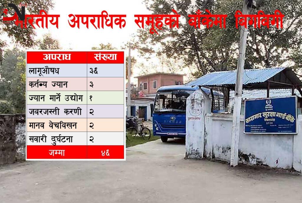 अहिले बाँकेको जिल्ला कारागारमा ४६ जना भारतीय नागरिक छन् । उनीहरु सबैभन्दा धेरै लागूऔषधको अपराधमा संलग्न रहेको देखिएको छ । योसँगै कर्तव्य ज्यान, ज्यान मार्ने उद्योग, जबरजस्ती करणी, मानव बेचबिखन र सवारी दुर्घटनामा उनीहरु संलग्न रहेका जिल्ला कारागारका प्रमुख अर्जुन जंग शाहले जनाए । अपराध गरिसकेपछि भाग्न र लुक्न सजिलो हुने भएकाले पनि भारतीय अपराधिक समूहको रोजाइमा नेपालगन्ज पर्ने गरेको छ । यसलाई समयमै नियन्त्रण नगर्ने हो भने नेपालगन्जमा अझ ठूला अपराधिक गतिविधि घट्न सक्ने देखिन्छ । उनीहरुको अपराधिक गतिविधिले बाँकेको सुरक्षा व्यवस्थालाई नै चुनौती दिएको छ ।