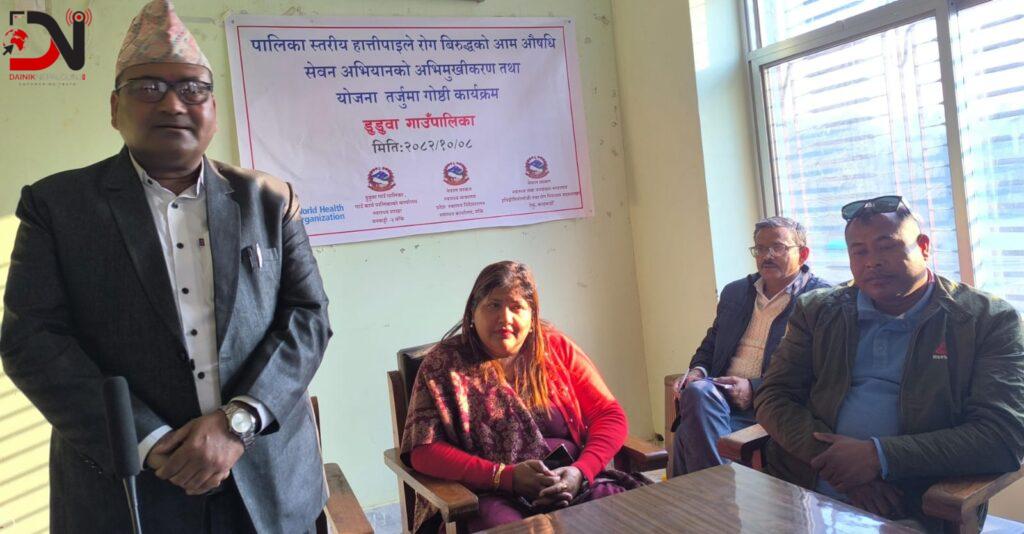 १५ वर्षसम्म निरन्तर हरेक वर्ष औषधी खुवाउँदा पनि अपेक्षित सफलता हासिल हुन नसकेपछि बाँके जिल्लामा बिहीबारदेखि हात्तीपाइले रोगविरुद्ध १६औँ पटकको आम औषधी सेवन अभियान सुरु गरिएको छ । औषधी सेवन गर्नेको दर न्यून रहेकाले नेपालगन्ज उपमहानगरपालिका, डुडुवा र नरैनापुर गाउँपालिका तथा बैजनाथ गाउँपालिकाको एउटा वडामा पुनः अभियान सञ्चालन गरिएको हो ।स्वास्थ्य कार्यालय बाँकेका अनुसार, १६औँ पटकको अभियान बिहीबार नरैनापुर गाउँपालिकाबाट औपचारिक रूपमा शुभारम्भ गरिएको छ । कार्यालय प्रमुख सुनिता पौडेलले हात्तीपाइले निवारणका लागि लक्षित जनसंख्याको सहभागिता अझै पनि ८० प्रतिशत नपुगेकाले अभियान दोहोर्याउनुपरेको बताइन् ।नेपालगन्ज उपमहानगरपालिकामा बैजनाथमा माघ १२ गतेदेखि अभियान सञ्चालन गरिने जनाइएको छ ।यसपटकको अभियानमार्फत नरैनापुर गाउँपालिकाका ४३ हजार ८९९, नेपालगन्ज उपमहानगरपालिकाका १ लाख ६९ हजार ३३९ र डुडुवा गाउँपालिकाका ४३ हजार ९७५ गरी कुल ३ लाख ५७ हजार ५१३ जनालाई औषधी खुवाउने लक्ष्य राखिएको छ । अभियान सञ्चालनका लागि ४५ लाख रुपियाँभन्दा बढी बजेट खर्च हुने जनाइएको छ ।अभियानको उद्घाटन गर्दै नरैनापुर गाउँपालिकाका अध्यक्ष शैयद इस्तियाक अहमद शाहले स्वयं औषधी सेवन गर्दै सबै नागरिकलाई अनिवार्य रूपमा औषधी खान आग्रह गरे । ‘अब १७औँ पटक अभियान दोहोरिन नदिन सबैले जिम्मेवारीपूर्वक औषधी सेवन गर्न आवश्यक छ,’ उनले भने ।स्वास्थ्य कार्यालयका अनुसार, जिल्लामा औषधी सेवन नगर्नेहरू मध्ये ३३.२८ प्रतिशतले प्रतिअसरको डर र ३२.५३ प्रतिशतले जानकारीको अभावका कारण औषधी नखाएको पाइएको छ । प्रभावकारी अभियान शुरु गर्दै डुडुवाबाँकेको डुडुवामा १६ औँ पटक हात्तीपाइले विरुद्ध आम औषधी सेवन अभियानलाई प्रभावकारी बनाउन आवश्यक तयारी गरिएको छ ।डुडुवा गाउँपालिका स्वास्थ शाखा प्रमुख सिताराम चौधरीले शुक्रवारदेखि १० दिनसम्म डुडुवामा १६ औँ हात्तीपाइले विरुद्ध आम औषधी सेवन अभियान सञ्चालन गरिन लागेको जानकारी दिए । उनले यसपटकको अभियानलाई प्रभावकारी बनाउन दिनभर र साँझसमेत स्वास्थ्यकर्मीहरु घरदैलो गर्ने बताए ।‘टोलटोलमै पुगेर जहाँ समस्या हुन्छ, त्यहीँ प्रवुद्ध व्यक्तित्वलाई उभ्याएर सम्झाउने बुझाउने काम गरिनेछ,’ स्वास्थ्य सेवामा अगाडी रहेको डुडुवा हात्तीपाइले विरुद्ध आम औषधी सेवन अभियानको असफलताले नराम्रो छाप पारेकोमा दुखी हुँदै भने, ‘यसपटक ८० प्रतिशतमा कभरेज पुर्याउनै पर्छ ।’बिहीवार डुडुवामा पालिकास्तरीय हात्तीपाइले विरुद्ध आम औषधी सेवन अभियानको अभिमुखिकरण तथा योजना तर्जुमा गोष्ठी कार्यक्रम गरिएको छ । कार्यक्रममा स्वास्थ्य तथा जनसंख्या मन्त्रालय, इपिडिमियोलोजी तथा रो