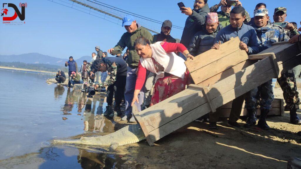 चितवन राष्ट्रिय निकुञ्ज कार्यालयमा रहेको गोही प्रजनन केन्द्रबाट ल्याइएका एउटा भालेसहित १० वटा घडियाल छाडिएको छ ।