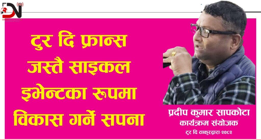 बाँके–बर्दियाको पर्यटन, खेलकुद र पर्यावरणलाई एउटै सूत्रमा गाँस्ने उद्देश्यसहित आयोजना हुँदै आएको ‘टुर दि ठाकुरद्वारा–२०८२’ यस वर्ष नयाँ उत्साह र परिमार्जित अवधारणासहित अघि बढेको छ । आयोजक नेपालगन्ज साइक्लिङ क्लबका निवर्तमान अध्यक्षसमेत रहेका कार्यक्रम संयोजक प्रदीप कुमार सापकोटा भन्छन्, ‘यो कार्यक्रम केवल साइकल यात्रा मात्र होइन, खेलकुद, स्वास्थ्य सचेतना, पर्यटन प्रवद्र्धन र पर्यावरण संरक्षणलाई समेट्ने बहुआयामिक अभियान हो ।’