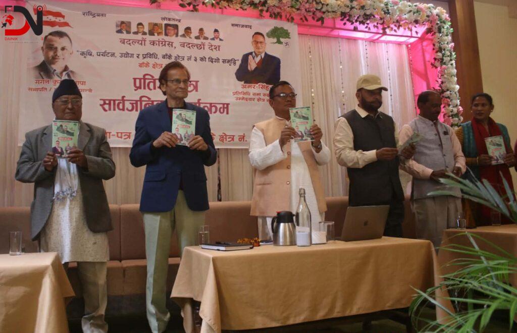 बाँके क्षेत्र नम्बर ३ मा नेपाली कांग्रेसको तर्फबाट उम्मेदवारी दिएका अमर सिंह पुनले कृषि, पर्यटन, उद्योग, युवा र प्रविधिलाई आर्थिक समृद्धिसँग जोड्ने प्रतिज्ञा गरेका छन् ।
