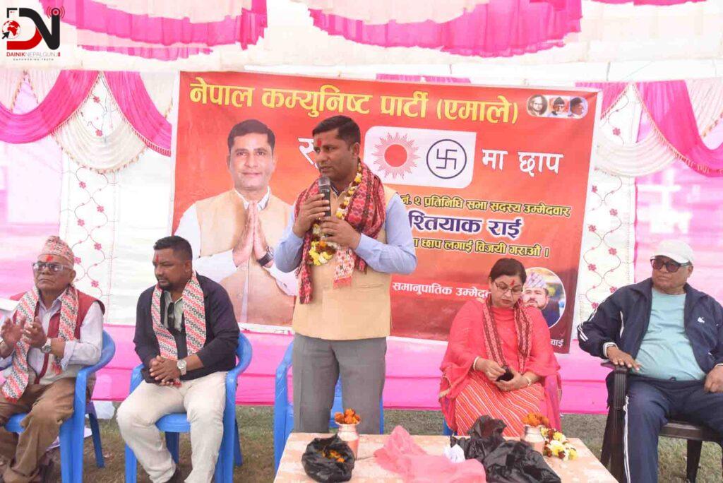 नेकपा एमालेबाट बाँके क्षेत्र नं २ का प्रतिनिधिसभा सदस्य उम्मेदवार मोहम्मद इश्तियाक राईले बाँके निर्वाचन क्षेत्र नं २ को पछिल्लो ३ वर्ष खेर गएको बताउनुभएको छ। आज नेपालगन्जको वडा नं १ स्थित सुन्दर नगरमा आयोजित चुनावी कार्यक्रममा सम्बोधन गर्दै उम्मेदवार राईले यो क्षेत्रबाट निर्वाचित अघिल्लो कार्यकालका संघीय सांसदले कुनै काम गर्न नसकेको आरोप लगाउनुभयो।