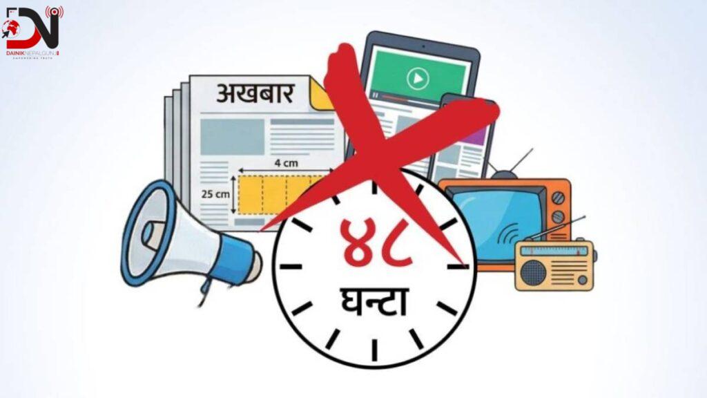 सो अवधिमा एसएमएस, फेसबुक, भाइबर जस्ता विद्युतीय माध्यमद्वारा प्रयोग गरिने सामाजिक सञ्जालमार्फत मत माग्न र निर्वाचन प्रचारप्रसार गर्न पाइने छैन । त्यस्तै उम्मेदवार वा राजनीतिक दलको प्रचारप्रसार हुने गरी कुनै समाचार वा सूचना प्रकाशन वा प्रसारण गर्न पाइँदैन ।