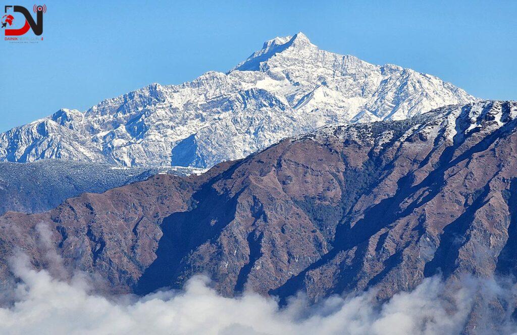 रुकुमपश्चिम त्रिवेणी गाउँपालिका–३ स्थित झुल्नेटाबाट शनिबार देखिएको जाजरकोट बारेकोट गाउँपालिकामा पर्ने चाखुरे हिमाल । तस्बिरः कुलदीप न्यौपाने/रासस