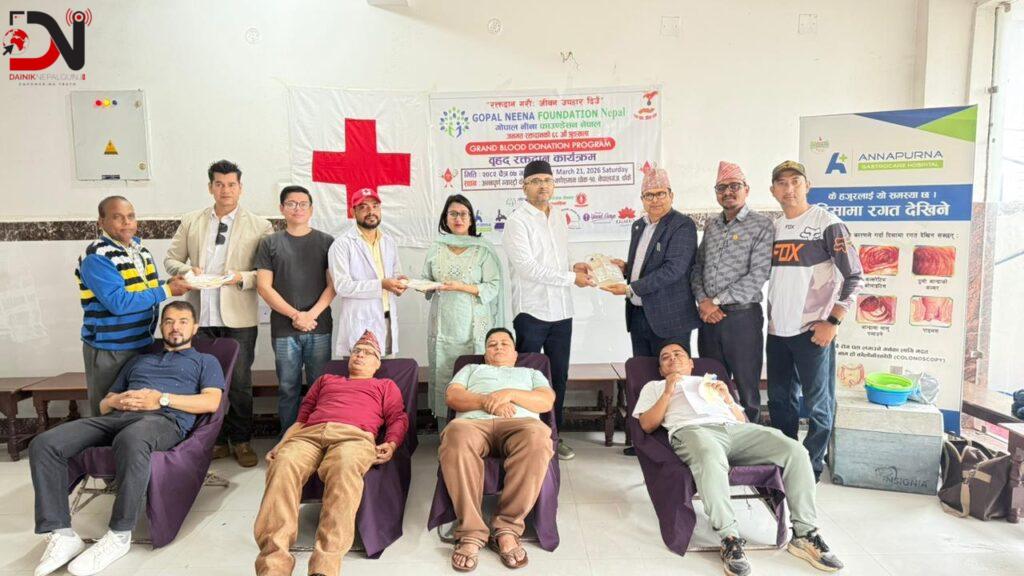 गोपाल–नीना फाउण्डेसन, नेपाल र जनमत अर्ध साप्ताहिकद्वारा नेपालगन्जमा आयोजना गरिएको रक्तदान कार्यक्रममा चिकित्सक, स्वास्थ्यकर्मी, पत्रकार, औषधि व्यवसायी, नेपालगन्ज साइकल क्लबका प्रशिक्षार्थीहरु तथा नियमित स्वयम्सेवी रक्तदाताहरुले रक्तदान गरेका छन् । “रक्तदान जीवनदान” भन्ने नाराका साथ शनिवार सम्पन्न जनमत रक्तदान अभियानको ६८ औं श्रृङ्खलामा ४ जना महिला सहित ४९ जनाले रक्तदान गरेका हुन् ।