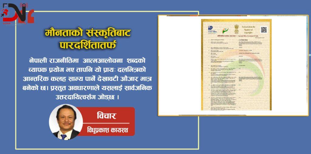 नेपाली समाजमा ‘बोल्नु’ भन्दा ‘नबोल्नु’ लाई सुरक्षित मानिने एक प्रकारको मनोवैज्ञानिक र राजनीतिक दबाब छ। जब कुनै निजामती कर्मचारी वा राजनीतिज्ञले प्रणालीभित्रको बेथिति देख्छ, उसले आफ्नो वृत्तिविकास वा राजनीतिक भविष्य जोगाउन ‘मौन’ बस्ने सम्झौता गर्छ। स्विकारोक्ति सञ्चार सिध्दान्त अनुसार यही सामूहिक मौनताले नै ‘संस्थागत लुटतन्त्र’ (‘इन्स्टिच्युसनलाइज्ड क्लेप्टोक्रेसी’) लाई मलजल गरिरहेको छ। जब गल्तीहरू स्वीकार गरिँदैनन्, ती गल्तीहरू बिस्तारै राष्ट्रिय पध्दतिका अंग बन्न पुग्छन्। आज नेपालको राजनीतिमा देखिएको विचलन र भ्रष्टाचारका शृङ्खलाहरू यही ‘मौनताको संस्कृति’ का उपज हुन्।