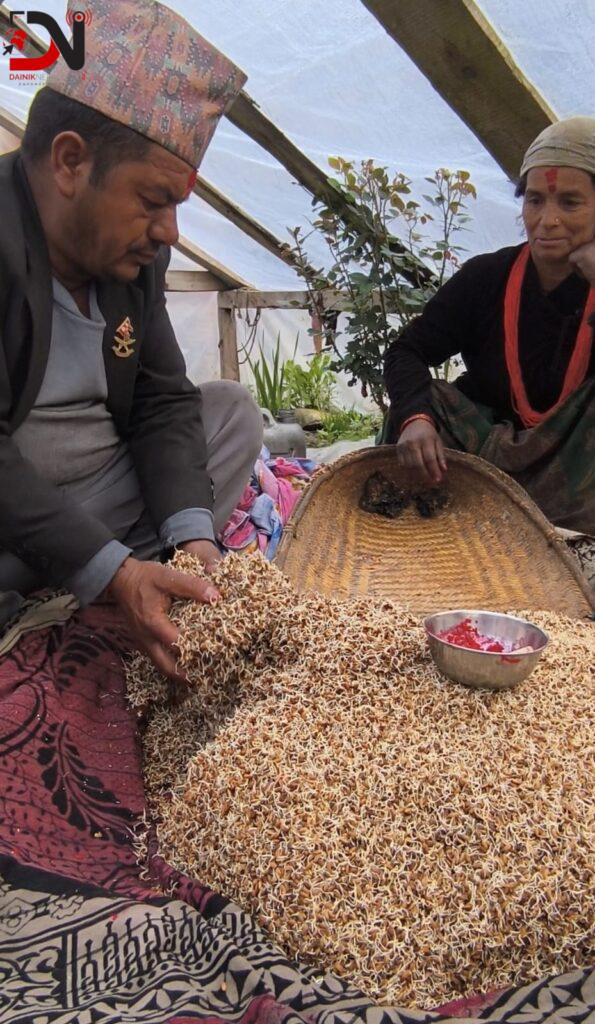 बारुवाँमा भिजाइएको धानलाई चार दिनपछि सोरुवाँ (चैत १६) गतेका दिन पानीबाट उतारेर घरमा ल्याउँछन् । भिजाइएको धानलाई घरको चुल्होसँग जोडिएको मैडो(समथर ठाउँ)मा राख्छन् । सल्लाको झुप्रा वा भोजपत्रले त्यसलाई ढाकेर न्यानो बनाउँछन् । त्यही दिनमा भिजाइएको धानको चिउरा कुट्छन् र पोइलीमा गएकी छोरी बहिनीहरुलाई कोशेलीका रुपमा पठाउने गर्दछन् ।