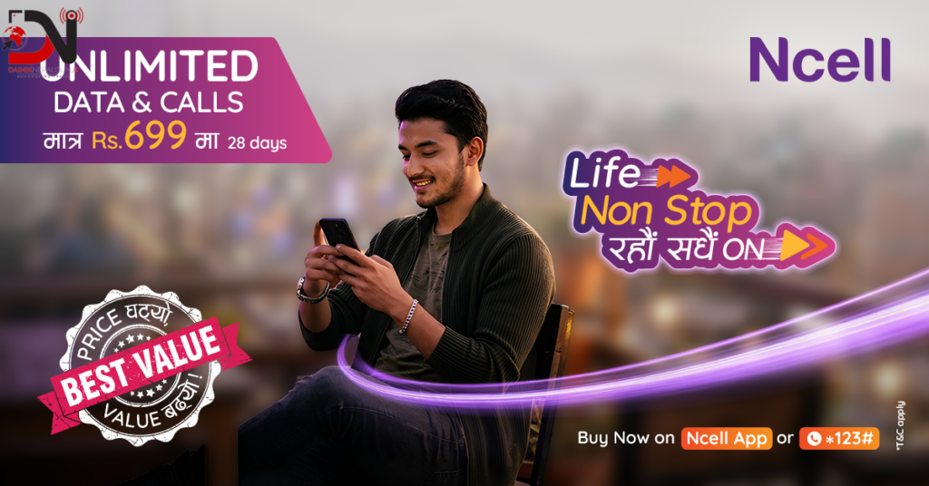 “कनेक्टिभिटीको महत्व र दूरसञ्चार सेवाप्रतिको बढ्दो मागलाई ध्यानमा राख्दै, नयाँ वर्ष २०८३ को अवसर पारेर, हामीले अनलिमिटेड डेटा र कलसहितको यो प्याक सञ्चालनमा ल्याएका छौं । यो विशेष प्याकले सेवाको लागत थप घटाउँदै ‘बेस्ट भ्यालु’ प्रदान गर्दछ र ग्राहकहरूको जीवनलाई नन् स्टप र डिजिटल बनाउँदै सधैं अन रहन सहयोग पु¥याउने विश्वास लिएका छौं,” एनसेलका चीफ कन्सुमर बिजनेस अफिसर उपाङ्ग दत्ताले भने । नेपाली उपभोक्ताहरूलाई सशक्त बनाउने आफ्नो प्रतिबद्धता जारी राख्दै यो प्याक सञ्चालनमा ल्याएको र यसले विभिन्न सेवा सुविधाहरु अनलाईनबाटै उपलब्ध गराउने सरकारको योजनामा मद्दत गर्ने दत्ताले बताए ।