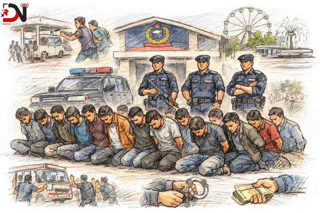 प्रहरीका अनुसार पक्राउ परेकाहरुले यात्रुहरुलाई जबर्जस्ती तान्ने, गाडी चढाउन दबाब दिने तथा अनावश्यक हैरानी दिने जस्ता गतिविधि गर्दै आएका थिए । यसरी सार्वजनिक स्थानमा यात्रुहरुलाई असुविधा हुने गतिविधि बढेपछि प्रहरीले विशेष निगरानी गरी उनीहरुलाई पक्राउ गरेको जनाएको छ ।