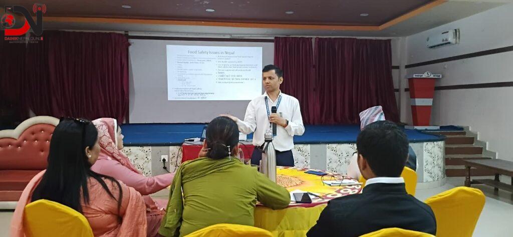 कार्यक्रममा खाद्य प्रविधि तथा गुण नियन्त्रण कार्यालय नेपालगन्जका प्रमुख प्रशान्त पोखरेलले खाद्य स्वच्छता तथा गुणस्तरसम्बन्धी प्रस्तुति दिँदै बजारमा देखिएका बेथितिविरुद्ध कार्यालयले नियमित अनुगमन, सचेतना र कानुनी कारबाही गर्दै आएको जानकारी गराए । उनले उपभोक्ताहरूलाई वस्तु वा सेवा खरिद गर्दा लेबल, उत्पादन तथा म्याद समाप्ति मिति, गुणस्तर चिन्ह, मूल्यसूची लगायतका विवरणमा ध्यान दिन आग्रह गरे । साथै, खरिदपछि अनिवार्य रूपमा बिल लिनुपर्नेमा जोड दिँदै यसले उपभोक्ताको अधिकार सुरक्षित गर्न सहयोग पुग्ने बताए ।