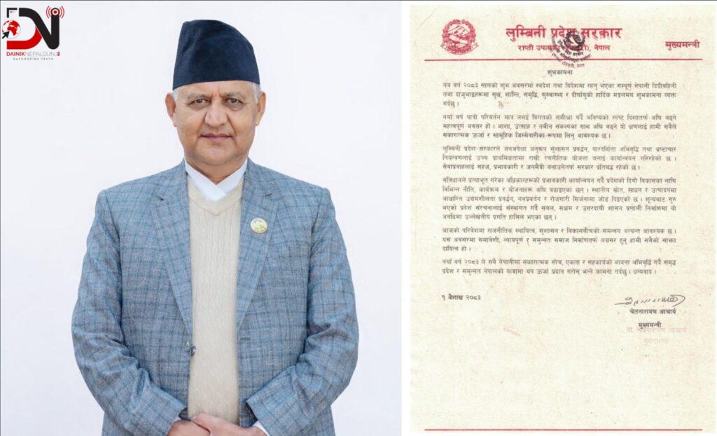 लुम्बिनी प्रदेशका मुख्यमन्त्री चेतनारायण आचार्यले सुशासन प्रवद्र्धन, पारदर्शिता अभिवृद्धि तथा भ्रष्टाचार नियन्त्रणलाई सरकारले उच्च प्राथमिकतामा राखेर काम गरिरहेको बताउनुभएको छ । नयाँ वर्ष २०८३ को अवसरमा मंगलबार शुभकामना सन्देश जारी गर्दै मुख्यमन्त्री आचार्यले जनअपेक्षा अनुसार सेवाप्रवाहलाई सहज, प्रभावकारी र जनमैत्री बनाउनेतर्फ प्रदेश सरकार प्रतिबद्ध रहेको उल्लेख गर्नुभएको हो । उहाँले संविधानले प्रत्याभूत गरेका अधिकारहरूको प्रभावकारी कार्यान्वयनमार्फत प्रदेशको दिगो विकासका लागि विभिन्न नीति, कार्यक्रम र योजनाहरू कार्यान्वयनमा रहेको जानकारी गराउनुभएको छ ।उहाँका अनुसार स्थानीय स्रोत, साधन र उत्पादनमा आधारित उद्यमशीलता प्रवद्र्धन, नवप्रवर्तन तथा रोजगारी सिर्जनामा विशेष जोड दिइएको छ । शून्यबाट सुरु भएको प्रदेश संरचनालाई संस्थागत गर्दै सबल, सक्षम र उत्तरदायी शासन प्रणाली निर्माणमा उल्लेखनीय प्रगति हासिल भएको पनि उहाँले बताउनुभयो ।मुख्यमन्त्री आचार्यले नयाँ वर्ष पात्रो परिवर्तन मात्र नभई विगतको समीक्षा गर्दै भविष्यको स्पष्ट दिशातर्फ अघि बढ्ने महत्वपूर्ण अवसर भएको उल्लेख गर्नुभयो । आशा, उत्साह र नयाँ संकल्पका साथ सकारात्मक ऊर्जा र सामूहिक जिम्मेवारीका रूपमा यो क्षणलाई लिनुपर्नेमा उहाँले जोड दिनुभयो ।उहाँले वर्तमान परिवेशमा राजनीतिक स्थायित्व, सुशासन र विकासबीचको समन्वय अत्यन्त आवश्यक रहेको उल्लेख गर्दै समावेशी, न्यायपूर्ण र समुन्नत समाज निर्माणतर्फ सबैले सहकार्य गर्नुपर्ने बताउनुभयो ।नयाँ वर्ष २०८३ ले सबै नेपालीमा सकारात्मक सोच, एकता र सहकार्यको भावना अभिवृद्धि गर्दै समृद्ध प्रदेश र समुन्नत नेपालको यात्रामा थप ऊर्जा प्रदान गर्ने विश्वास व्यक्त गर्नुभएको छ ।