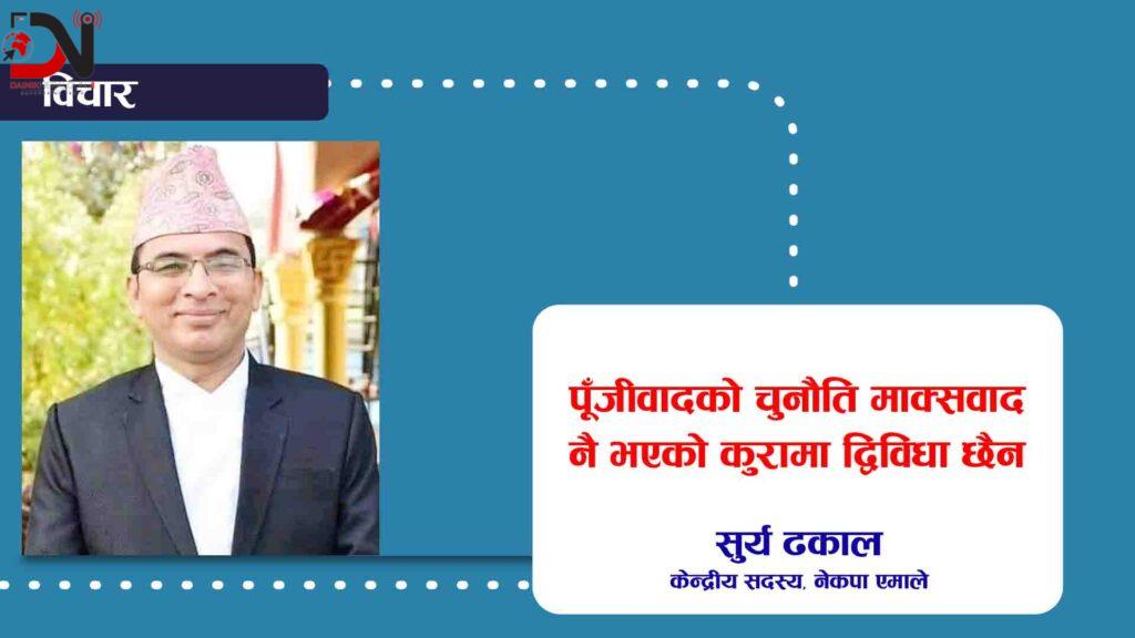 पुजिवादको चुनौति माक्र्सवाद नै भएको कुरामा द्विविधा छैन ।७७ अौ पार्टी स्थापना दिवस केवल एक ऐतिहासिक दिन होइन, यो आत्ममूल्यांकन र संकल्प गर्ने अवसर पनि हो। हामीले विगतबाट शिक्षा लिएर वर्तमानलाई सुधार गर्दै भविष्य निर्माण गर्नुपर्छ। पुष्पलाल श्रेष्ठले देखाएको मार्गमा अघि बढ्दै समानता, न्याय र समृद्धिको समाज निर्माण गर्नु नै आजको मुख्य लक्ष्य हुनुपर्छ। यही नै उनको सच्चा सम्मान र पार्टी स्थापना दिवसको वास्तविक अर्थ हो।