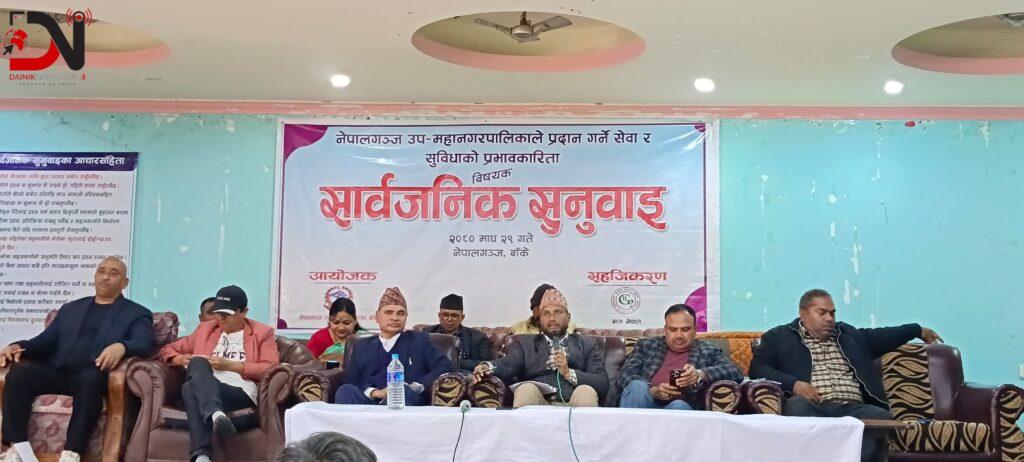 नेपालगन्ज उपमहानगरपालिकाको आयोजना तथा बास नेपालको सहजिकरणमा भएको सुनुवाईमा नगरबासिहरुले नगरको समर्ग विकास निर्माण र समृद्धीका बिषयमा दर्जनौ प्रश्न तथा जिज्ञासा राखेका थिए । सहभागिहरुले राखेका प्रश्न तथा जिज्ञासाहरुको समाधान सुनुवाईमा प्रमुख जवाफदेहि बक्ताको रुपमा आसिन नगर प्रमुख प्रशान्त बिष्ट, उपप्रमुख कमरुद्धीन राई, प्रमुख प्रशासकिय अधिकृत ओम बहादुर खड्का, प्रबक्ता प्रमोद रिजाल, वडा अध्यक्ष, कार्यपालिका सदस्य र शाखा प्रमुखहरुले दिएका थिए । झण्डै अढाई घण्टा सुनुवाईका सहभागि र सरोकारवालाहरु बिचमा भएको प्रश्नोत्तर पश्चात ५ बुदें साझाँ सार्वजनिक प्रतिबद्धताको घोषणा गरिएको थियो ।