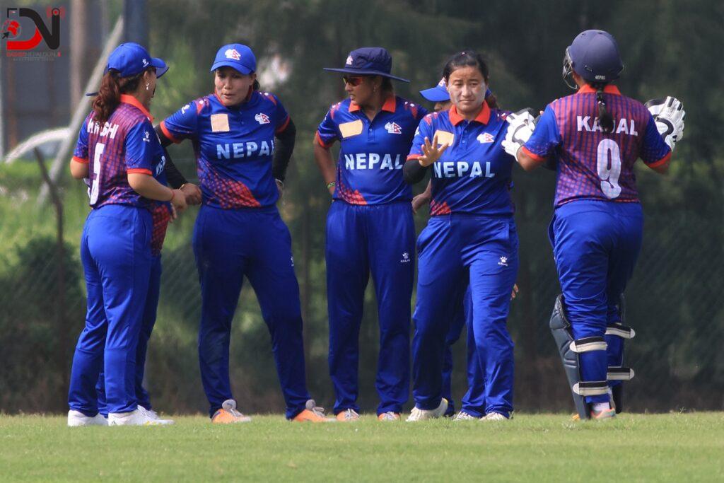 माल्दिभ्सलाई मात्र १३ रनमै समेट्ने क्रममा नेपालकी अस्मिना कर्माचार्यले सर्वाधिक चार विकेट लिइन् । यस्तै पूजा महतो र रुबिना श्रेत्रीले तीन तीन विकेट लिइन् । माल्दिभ्सका कुनै पनि खेलाडीले दोहोरो अङ्कमा रन जोड्न सकेनन् । सुमाया विन्थ अब्दुल हमिदले पाँच तथा नब्बा नासिम र हफसा अब्दुल्लाले दुई दुई रन बनाए । लगातार तीन खेल जित्दै प्रतियोगिताको समूह ‘डी’ मा रहेको नेपाल क्वाटरफाइनमा प्रवेश गरेको छ । नेपालले पहिलो खेलमा हङकङ र दोस्रो खेलमा भुटानलाई आठ आठ विकेटले पराजित गरेको थियो । लगातार तेस्रो खेलमा हार बेहोरेको माल्दिभ्स प्रतियोगिताबाट बाहिरिएको छ । माल्दिभ्स पहिलो खेलमा भुटान र दोस्रो खेलमा हङकङसँग पराजित भएको थियो