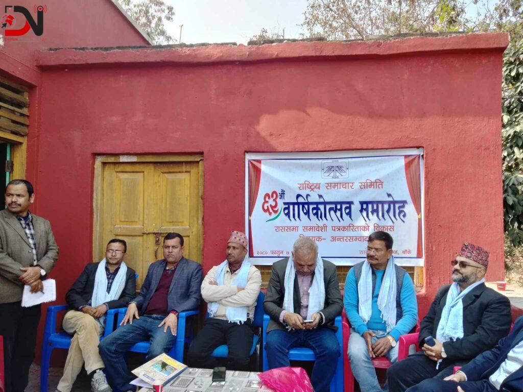 रासस नेपालगञ्ज कार्यालयका प्रमुख युवराज पाण्डेको अध्यक्षतामा भएको उक्त कार्यक्रममा नेपालगञ्जका अग्रज पत्रकारहरु शिव डोटेल र प्रेम केसी, नेपाल पत्रकार महासङ्घका सचिव कमल डाँगी, सामाजिक अभियन्ता विश्वजित तिवारी, नेपाल टेलिभिजन कोहलपुरका प्रमुख विजय बर्मा, अवधि पत्रकार महासङ्घका संस्थापक अध्यक्ष सूर्यलाल यादव, रासस नेपालगञ्ज कार्यालयका पूर्वप्रमुख निरजकुमार गौतम, पत्रकारहरु बिमला चौधरी, रुपा गहतराज, डक्ट धिताल, नविन गिरी, दुर्गा रोकायलगायतले राससको उत्तरोत्तर प्रगतिको कामना गर्नुभएको थियो ।