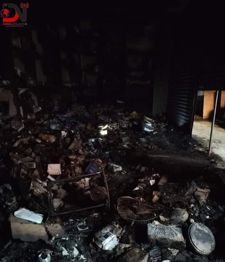 नेपालगन्जको घरबारी टोलमा रहेको न्यू माया इलेक्ट्रोनिक्स पसलमा आगलागी भएकाे छ । उक्त आगलागीमा करिब ९६ लाख रुपैयाँ बराबरको क्षति भएको पसलका सञ्चालक उमेशकुमार कसौंधनले जानकारी दिए ।