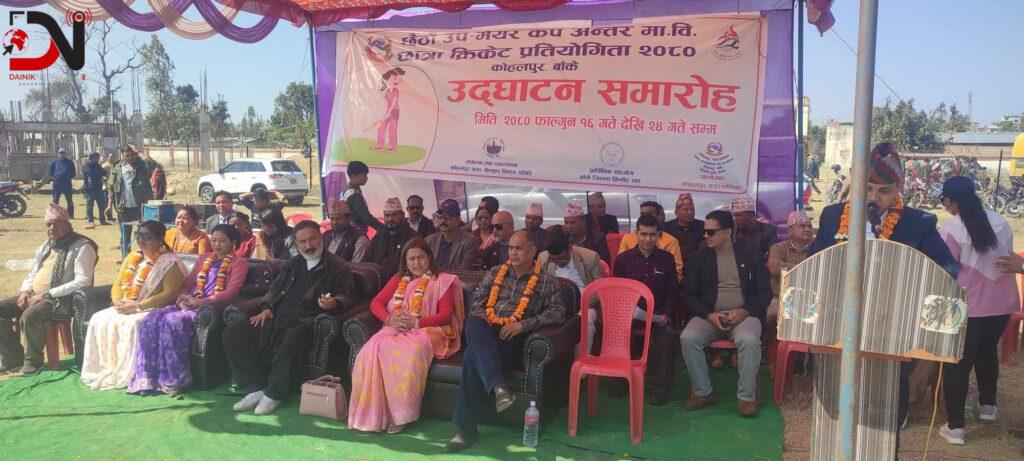 कोहलपुर नगरपालिकाको आयोजना, नगर खेलकुद विकास समितिको व्यवस्थापन र जिल्ला क्रिकेट संघ बाँकेको प्राविधिक सहयोगमा बुधवारदेखि कोहलपुरमा सुरु भएको छैठौं अन्तर मावि स्तरीय उपमेयर यु १९ छात्रा क्रिकेट प्रतियोगिताको उद्घाटन सत्रलाई सम्वोधन गर्दै उनले कोहलपुर क्रिकेट मैदानको स्तरोन्नतीसँगै नेपालगन्जमा पनि थप क्रिकेट मैदानका लागि आफुले पहल गरिरहेको बताए ।