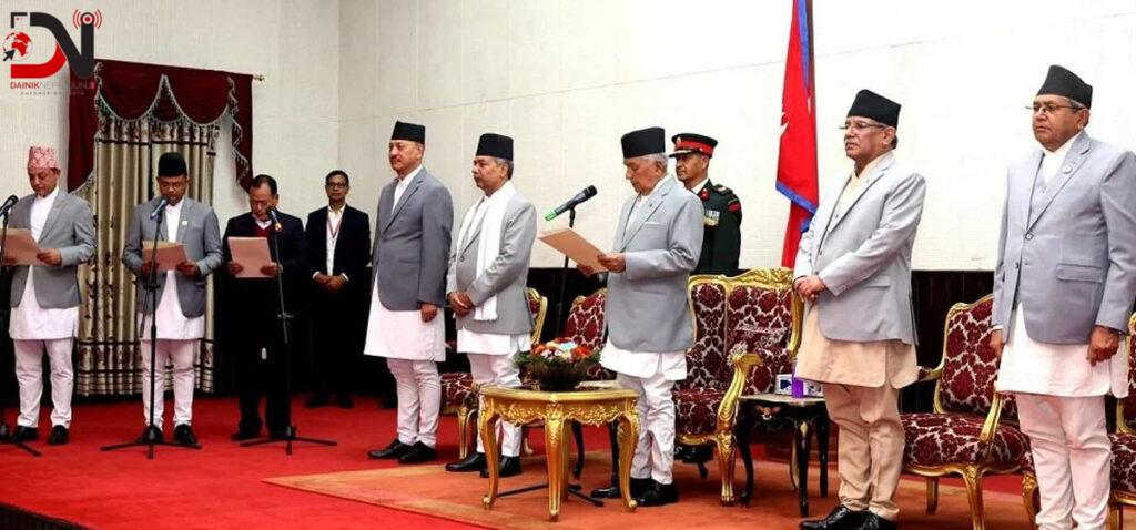 नवनियुक्त मन्त्रीहरूलाई सोमबार अपराह्न राष्ट्रपति रामचन्द्र पौडेलले शपथ गराएका हुन् ।