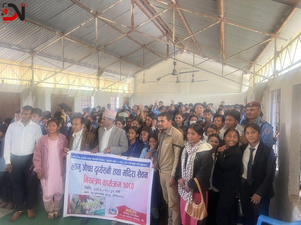 पछिल्लो समय युवा पुस्ता कुलतमा फँस्दै गएपछि विद्यार्थी तह देखिनै सचेतनामूलक कार्यक्रम आयोजना गर्न थालिएको छ । कोहलपुर नगरपालिका वडा नं. १ ले श्री कृष्ण मा.वि. र श्री जन ज्ञानज्योति मा.वि. कौशिलानगरमा विद्यार्थीका लागि सचेतनामूलक कार्यक्रम आयोजना गरेको हो ।