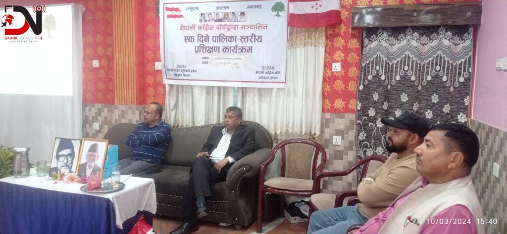 नेपाली कांग्रेस बाँकेले जिल्लाका आठ वटै पालिकामा प्रशिक्षण कार्यक्रम संचालन गरेको छ । नेपाली कांग्रेस बाँके प्रशिक्षण शाखाको आयोजना तथा नेपाली कांग्रेस लुम्बिनी प्रदेश प्रशिक्षण विभागको समन्वयमा शुक्रबारदेखि सुरु भएको एक दिने पालिका स्तरीय प्रशिक्षण कार्यक्रम नेपालगन्ज उपमहानगरपालिका, कोहलपुर नगरपालिका र राप्तीसोनारी गाउँपालिकामा सम्पन्न भएको छ ।