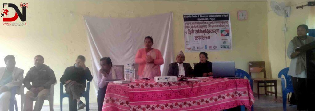 सो कार्यक्रममा स्वास्थ्य शाखा प्रमुख डिल्ली राज शर्मा , वास फोकल पर्सन कृष्ण गौतम , शिक्षा विकास तथा समन्वय ईकाई शिक्षा शाखा प्रमुख महिला तथा बालबालिका जेष्ठ नागरीक शाखा प्रमुख उषा पुन , वाटर एड नेपाल ,बेस बोर्ड ,एनसिसि, ओपी डि पालीका स्तरीय अपाङ्घगता सञ्जाल, परियोजना कर्मचारी, पिसी अधिकृतहरु, फिल्ड कर्मचारी ,अभिभावकहरुको सहभागीतामा कार्यक्रम सम्पन्न भएको थियो ।