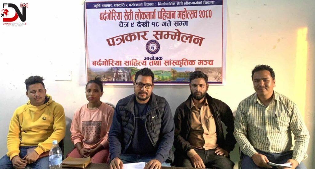 कैलालीको बर्दगोरिया गाउँपालिकामा सेती लोकमार्ग पहिचान महोत्सव हुने भएको छ । बर्दगोरिया साहित्य तथा सांस्कृतिक मञ्चले आयोजना गर्ने महोत्सवले निर्माणाधीन सेती लोकमार्ग छिटो सम्पन्न गर्न दबाबको काम गर्ने जनाइएको छ ।