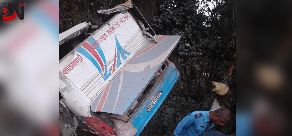 बसमा चालक सहित ३३ जना सवार रहेको खुलेको छ । रुकुम पश्चिमबाट सोमबार बिहान साँढे ११ बजे काठमाडौंका लागि छुटेको बागमती प्रदेश ०१–००६ ख ३८७९ नम्बरको यात्रु बस साँझ ५ बजेर २० मिनेटमा उक्त स्थानमा दुर्घटनामा परेको थियो । उक्त बस सडकदेखि १ सय ५० मिटर तल खसेको उद्दारमा खटिएका इलाका प्रहरी कार्यालय बुर्तिवाङका प्रहरी निरीक्षक राजकुमार बिकले बताए । बस भिर र खोंचमा खसेकोले उद्दारमा समेत कठिनाइ भएको थियो ।