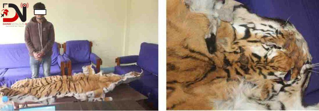 जिल्ला प्रहरी कार्यालय बाँकेले नेपालगन्ज–२ पुष्पलाल चोक स्थित एउटा होटलमा दुर्लभ पाटेबाघको छालाको कारोबार भइरहेको छ भन्ने गोप्य सूचनाको आधारमा तलासी लिने क्रममा पाटे बाघको छाला सहित सुर्खेत बराहताल गाउँपालिका वडा नं. २ का चन्द्र बहादुर कार्की पक्राउ परेको जानकारी दिएको छ ।