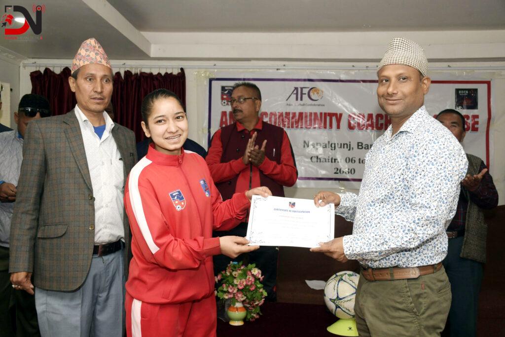 फुटबलको विकासमा सघाउने उद्देश्यले बाँके जिल्ला फुटबल सङ्घको आयोजनामा यहाँ सञ्चालित एन्फा कम्युनिटी कोचिङ सम्पन्न भएको छ ।