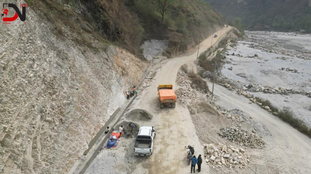 सडक फराकिलो, पानीको निकासका लागि नाली र पर्खाल निर्माण धमाधम भइरहेको तथा मालढुङ्गाबाट फर्सेसम्मको पाँच किलोमिटर दूरीमा कालोपत्र गर्न सबबेस बिछ्याउन थालिएको इन्जिनियर पन्तले बताउनुभयो । यो खण्डमा चालु आर्थिक वर्षभित्र नै कालोपत्र गरिसक्ने लक्ष्य छ । विभिन्न ठाउँमा करिब एक किलोमिटर ढलान र खोल्सामा कल्भर्ट निर्माण गरिएको छ ।