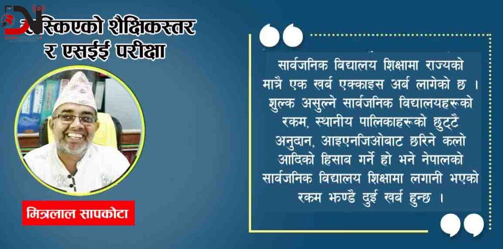 एसइइ पास गरेको विद्यार्थी आज कतैपनि बिक्दैन । उ अक्षर चिन्नेसम्म मात्रै भएको छ साक्षर भने भएको छैन । उसलाई आफ्ना नातागोताको बारेमा समेत जानकारी हुँदैन । अपवाद बाहेक घर भान्सा खेत करेसाबारी कतैको कुनै चिजको ज्ञान छैन । हुँदैन । नेपालमा आफ्नो कुनै भविष्य नदेख्ने युवा बन्दै गरेको विद्यार्थी जसोतसो १२ पास गर्ने र विदेशतिर नै आफ्नो क्यारियर खोज्ने तयारीमा लाग्छ । यसलाई कसरी नेपालको शैक्षिक गुणस्तर भन्ने ? रेमिट्यान्स पिपासु सरकार भने नयाँ नयाँ गन्तव्य खोजेर रोजगार दिएयो, नेपालको शिक्षा विश्वमा बिक्ने गरेको डम्फू बजाउँछ । १७ बर्ष पढेर पनि फेरि भाषा नपढि विदेश प्रवेश नपाउने विद्यार्थी उत्पादन गरेर नाक फुलाउँछ ।
