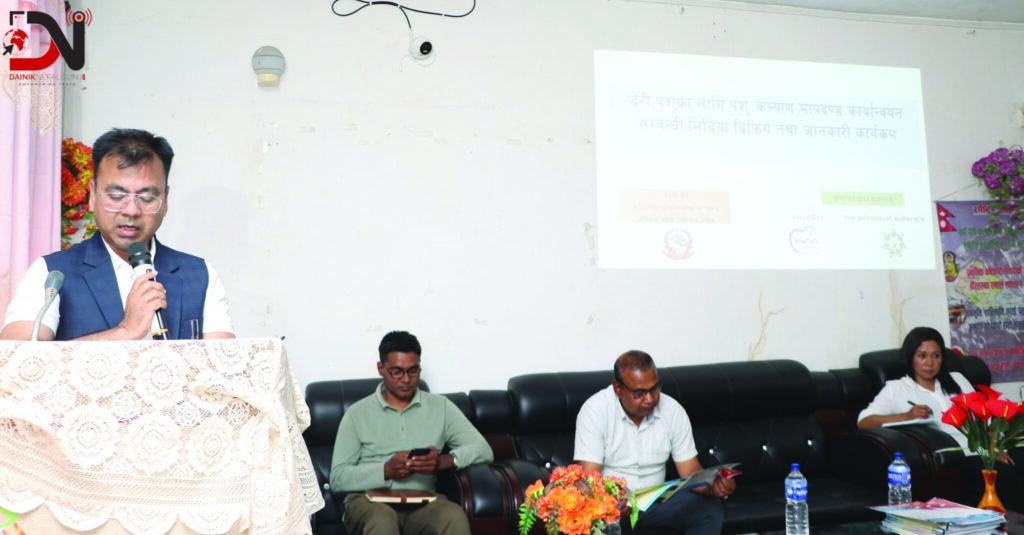 नेपालगञ्जमा आयोजित डेरी पशुका लागि पशु कल्याण मापदण्ड कार्यान्वयनसम्बन्धी ‘मिडिया बिफ्रिङ’ कार्यक्रममा लुम्बिनी प्रदेश सरकार पशुपंक्षी तथा मत्स्य विकास निर्देशनालयका निमित्त निर्देशक डा प्रवेशसिंह कुँवरले दूध उत्पादन गर्ने व्यावसायिक फर्मले अवलम्बन गर्नुपर्ने कल्याणसम्बन्धी मापदण्ड २०८० मा रहेको व्यवस्थाबारे जानकारी गराउनुभयो । मापदण्डले पशु कल्याणका निम्ति भोक, प्यास र कुपोषण हुन नदिने, डर, त्रास तथा तनाब हुन नदिने, भौतिक र शीत तथा तापजन्य असुविधा हुन नदिने, पीडा चोटपटक र रोगब्याधीबाट सुरक्षित राख्ने र सामान्य प्राकृतिक व्यवहार अभिव्यक्त गरी बाँच्न पाउने स्वतन्त्रतालाई सम्बोधन गरेको उहाँले बताउनुभयो ।