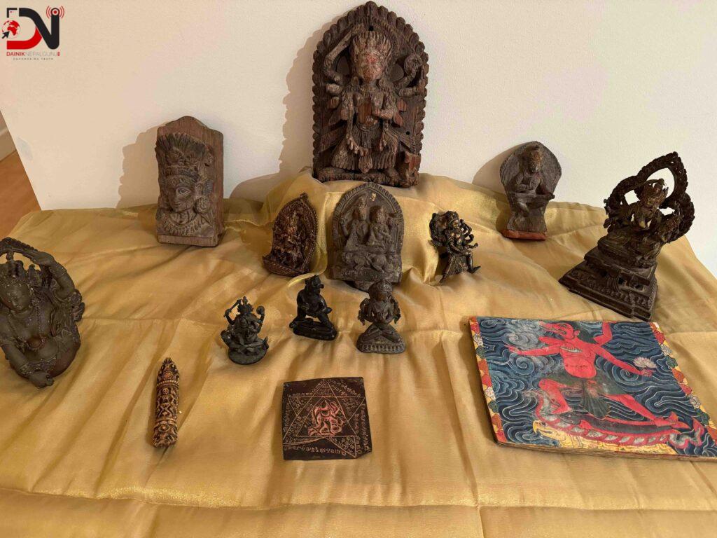 नेपाल–अमेरिका समन्वयमा हवाइबाट पठाइएका मूर्तिहरूमा ढलोटको कालाकुवेर मूर्ति, विश्वरुपको मूर्ति, महिषासुरमर्दिनीको मूर्ति, मोक्षदा भनिएको महामञ्जुश्री शक्तिको मूर्ति, ढलोटको विघ्नान्तक भैरवको मूर्ति, तामाको प्रज्ञापारमिताको मूर्ति, ढलोटको किन्नरीको मूर्ति, काठको बाराहीको मूर्ति र चमुण्डाको शिर, प्रस्तरको सरस्वतीको मूर्ति छन् । । यसैगरी अरु मूर्तिहरूमा प्रस्तरको मञ्जुश्री शक्ति, प्रस्तर अगस्थमुनिको मूर्ति, हस्तलिखित ग्रन्थ, र कुवेरका मूर्तिहरू, तामाको कालियन्त्र, हाडको सीतापाती यन्त्र, काठको फुर्वा, फलामको ताल्चा, ढलोटको सिन्हमु, फलामको त्रिशूल छन् । दूतावासले एक वर्षको अवधिमा ६३ वटा विभिन्न मूर्तिकला तथा वास्तुकलाका सामग्री नेपाल पठाएको छ ।