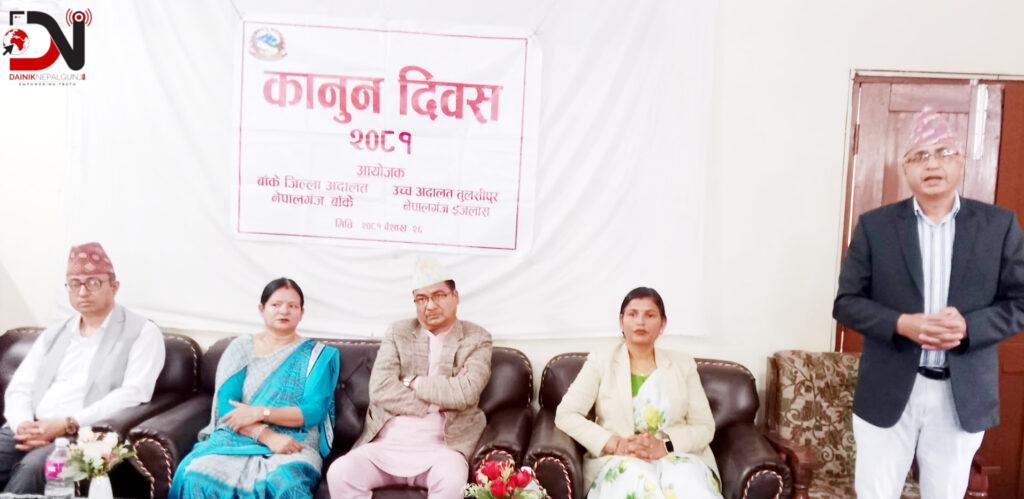 कानून दिवसका सन्दर्भमा नेपालगन्ज उच्च तथा जिल्ला अदालतद्वारा आयोजित कार्यक्रममा सहभागीले कार्यपालिकाको चंगुलबाट मुक्त भएको दिनको रूपमा मनाईने कानून दिवसलाई बिशेष महत्वका रूपमा लिनु पर्ने भन्दै स्वतन्त्र र सक्षम न्यायपालिकाका पक्षमा बोलेका थिए ।
