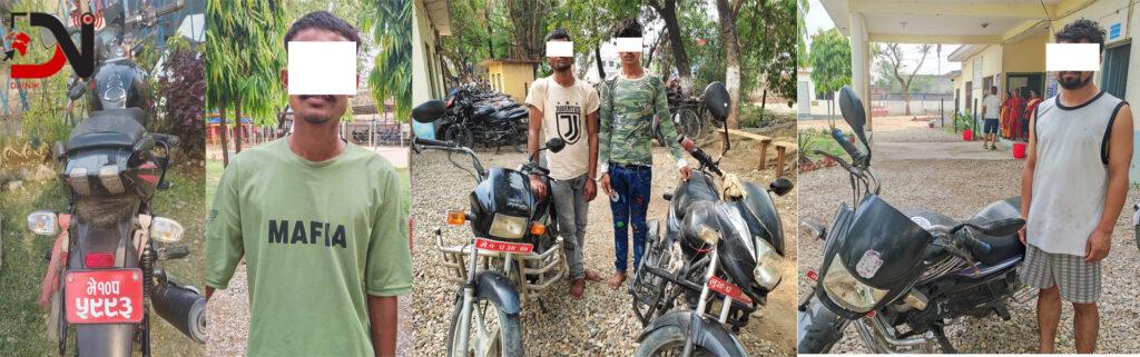 बाँके प्रहरीले तीन वटा मोटरसाइकल सहित चोरीमा संलग्न चार जनालाई पक्राउ गरेको छ ।