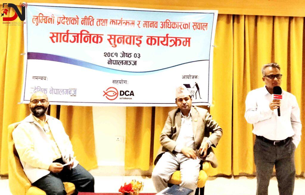मानवअधिकार आयोग नेपालगन्जकी प्रमुख द्धारिका अधिकारीले नेपालगन्ज शहर विकसित शहर हुँदाहुँदै पनि ग्रामिण परिवेशले शहर विकासमा पछाडी परेकोमा चिन्ता व्यक्त गर्नुभयो ।