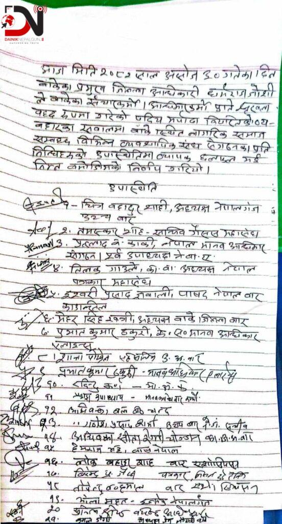 कानुन व्यवसायीहरुको छाता संस्था, नेपाल बार एशोसिएसनका जिल्लास्थित दुबै इकाइदेखि नेपाल पत्रकार महासंघ बाँके र लुम्बिनी प्रदेश अध्यक्ष समेत बाँकेस्थित नागरिक समाजसम्बद्ध बिहीवारको भेलाले प्रजिअका व्यवहारप्रति सार्वजनिक आलोचना गरेको हो । उनीहरुले छ बुँदे टिप्पणीसहितको पत्र गृहमन्त्रीलाई पठाएका थिए ।