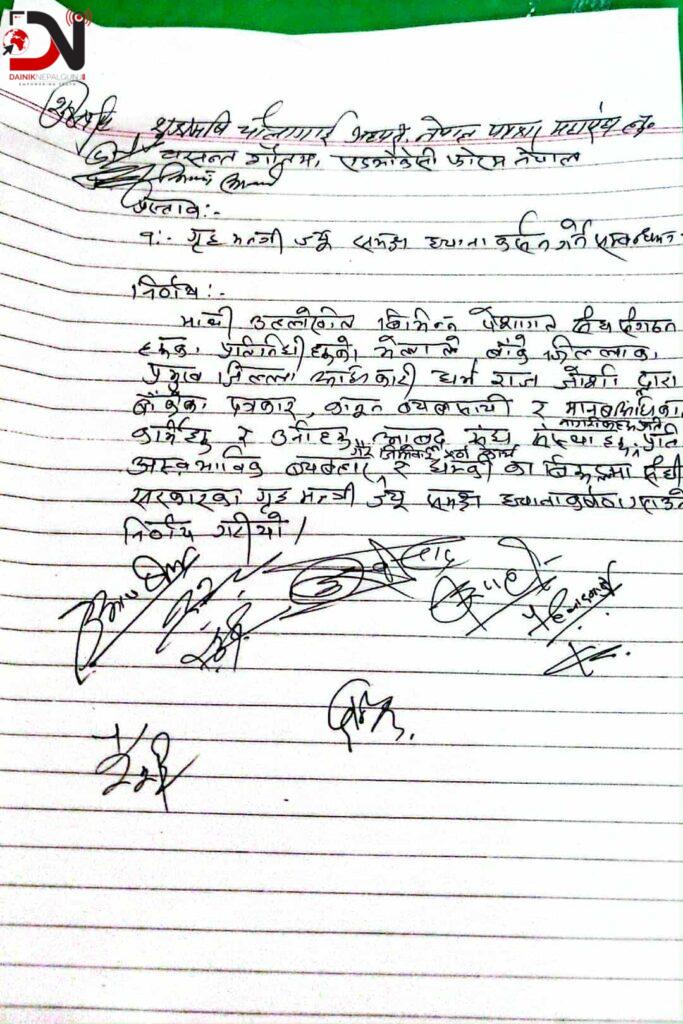विज्ञप्तिमार्फत उनीहरुले प्रमुख जिल्ला अधिकारी धर्मराज जोशीमाथि विभिन्न समूहका नाममा धम्की र लाञ्छना लगाउने कार्यप्रति पनि संगठनहरूले गम्भीर ध्यानाकर्षण गराएका छन् ।