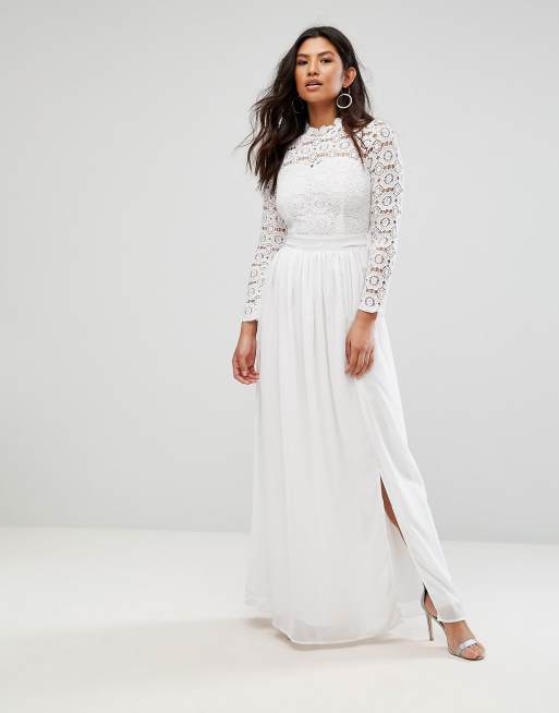 Club l high neck crochet lace on sale maxi dress with long sleeves
